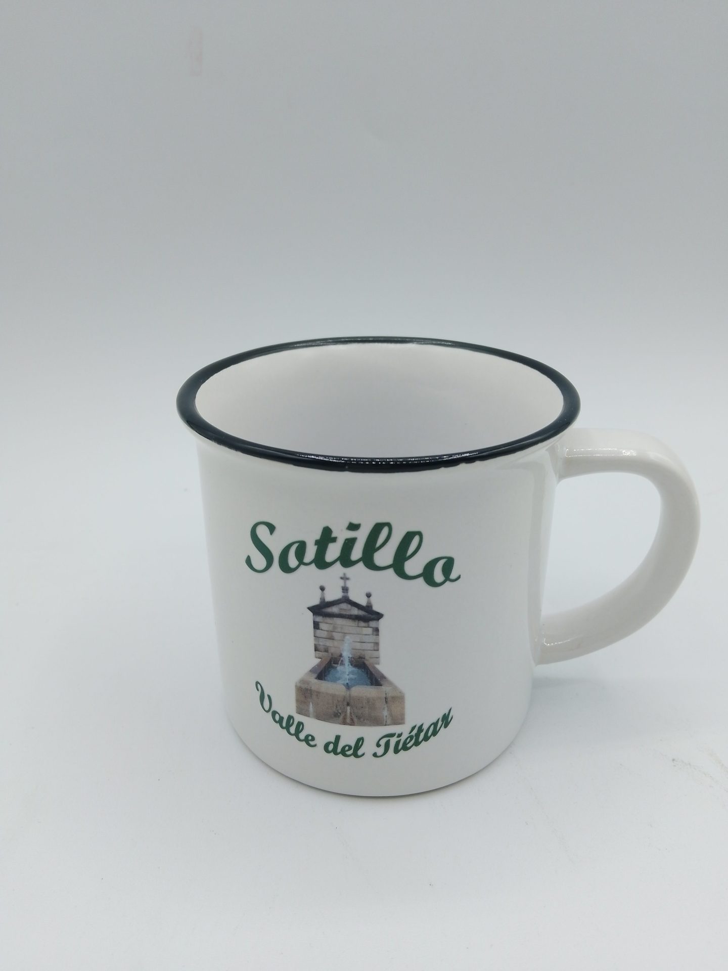 Taza de cerámica, con rótulos en relieve, estilo vintage.